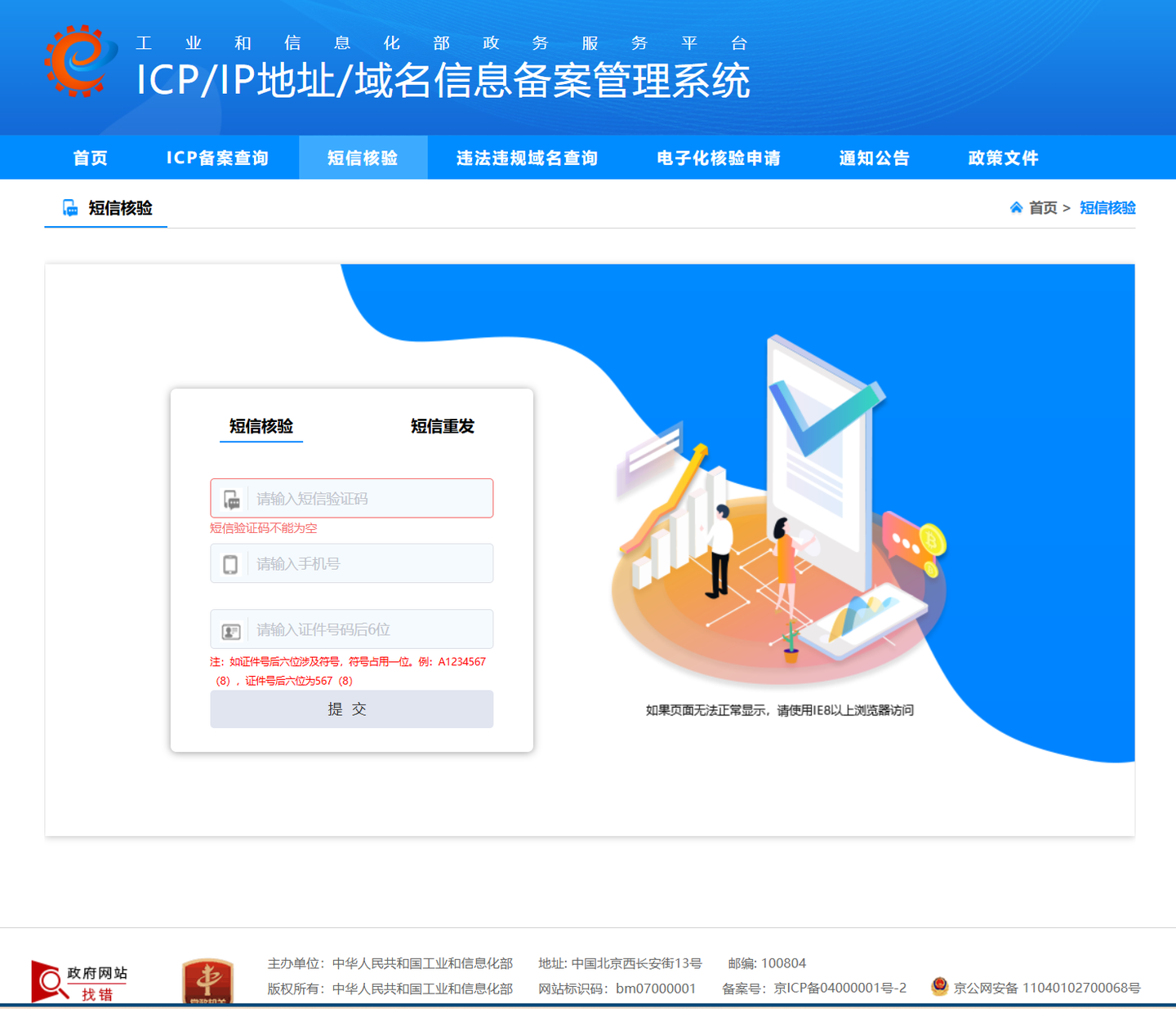 4. 变更网站:主体与服务负责人不同时,服务负责人需填写与主体手机号码不同的两个联系方式;主体与网站为同一人时需填写两个不同手机号码。
