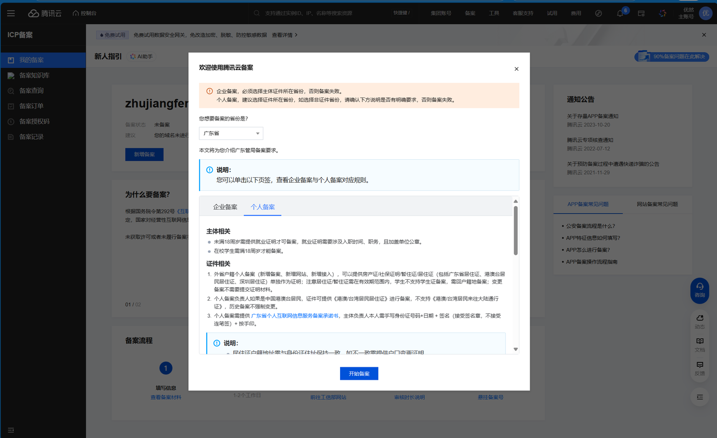 1. 外省户籍个人备案(新增备案、新增网站、新增接入),可以提供房产证/社保证明/暂住证/居住证(包括广东省居住证、港澳台居民居住证、深圳居住证)单独作为证明;注意居住证/暂住证需在有效期范围内,学生不支持学生证备案,需回户籍地备案;变更备案不需要提交证明材料。