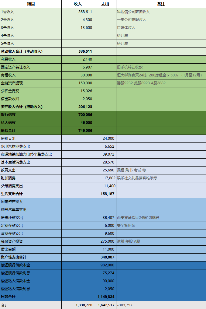 关于资产与负债分析,特别是家庭资产负债表的绘制,为我们提供了一个全面了解家庭资产状况的工具。通过分析净资产、资产负债率、主动收入占比和融资成本等指标,我们可以对家庭的财务状况有更深入的认识。在此基础上,我们可以制定更加合理的投资策略和财务规划,以实现家庭财富安全和保值增值。