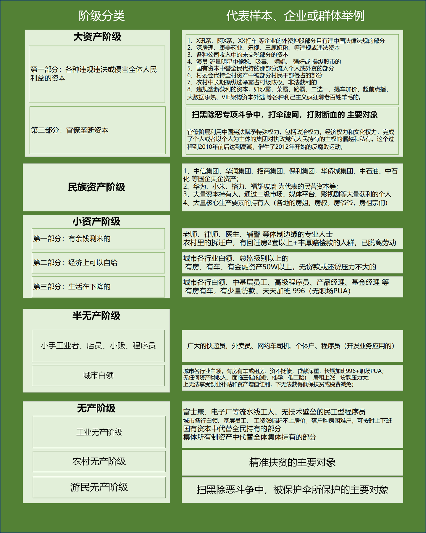 结合当代的中国社会,有些阶层消亡了,比如“农村无产阶级”,在全面小康社会,实现了”三不愁“ 后,全国性的按时消灭了贫困人口,这就是为什么中央将脱贫工作视为必须完成的政治任务。