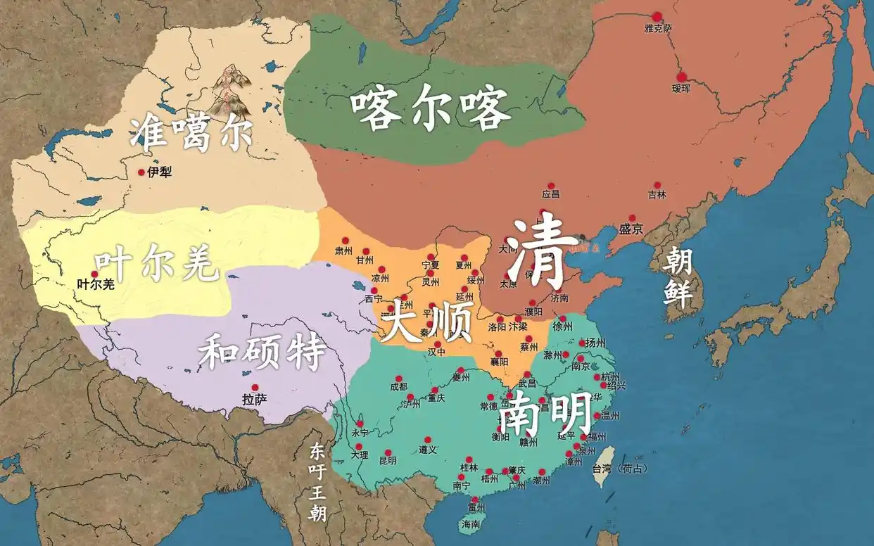 南明 (1644年—1662年)是明朝崇祯帝自缢身亡后,清军入关,明朝宗亲为了反清复明,相继在中国南方建立起的明朝政权的合称,历时18年。