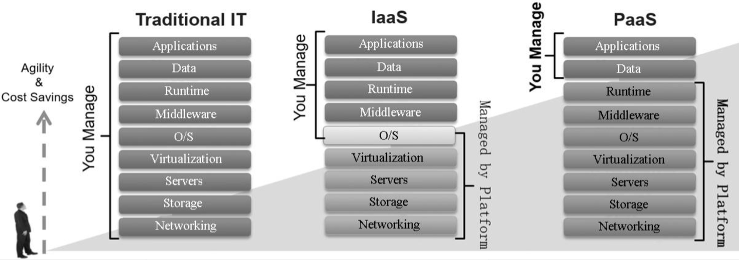 PaaS 是在IaaS上的一层集成的操作系统,数据库,服务器程序,中间件等。