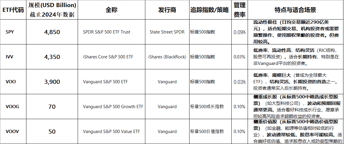 - 标普500仅反映大型股表现,不代表中小型企业或整体经济。