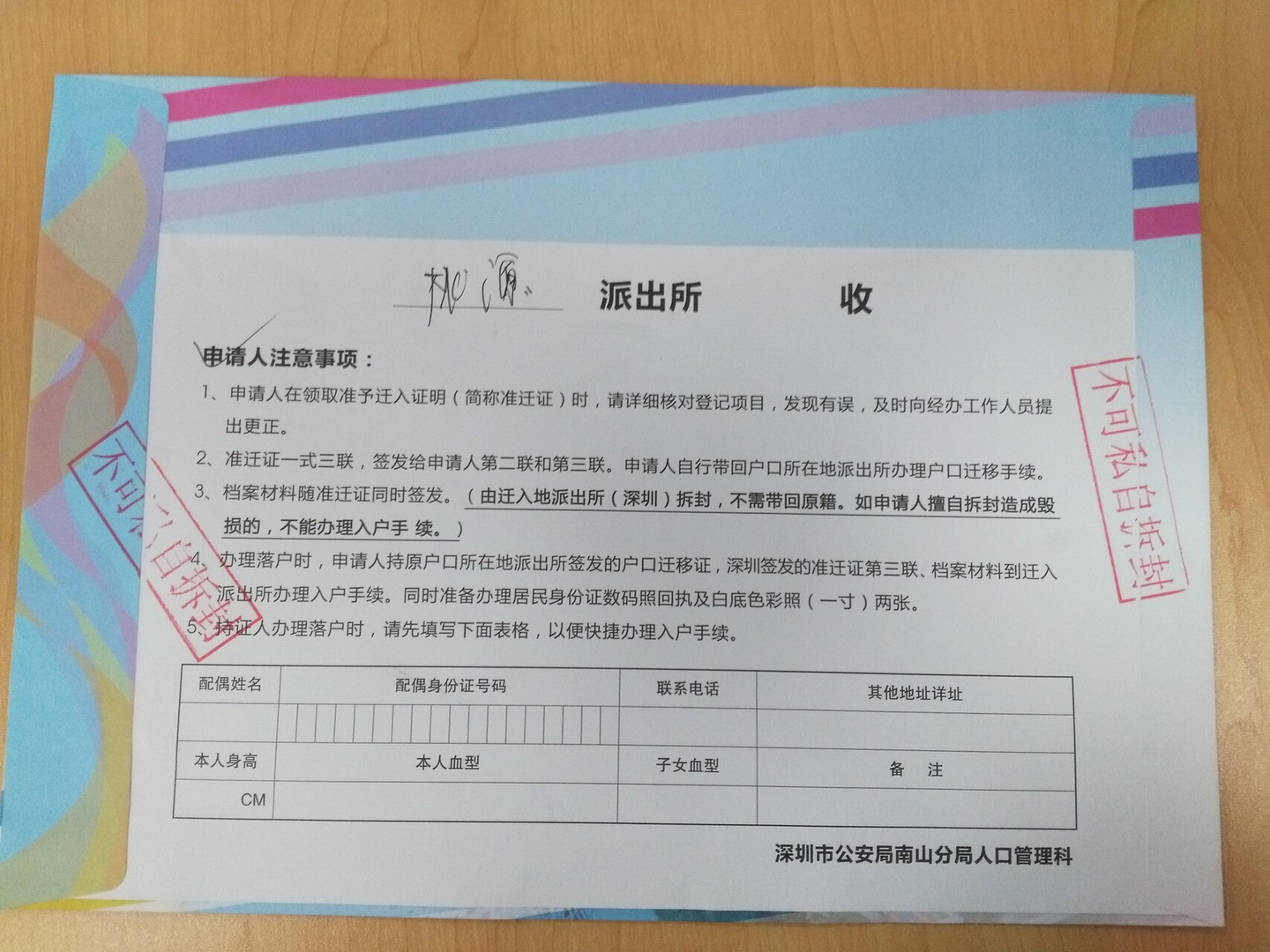终于在2016年的一个普通的一天拿到了深圳的入户通知资料。
