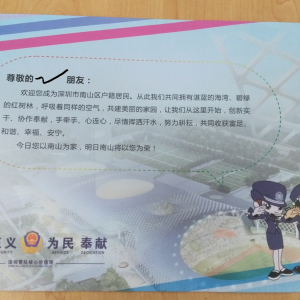 下图是当时拍的照片,“今日您以深圳南山为家,明日南山将以您为荣”!