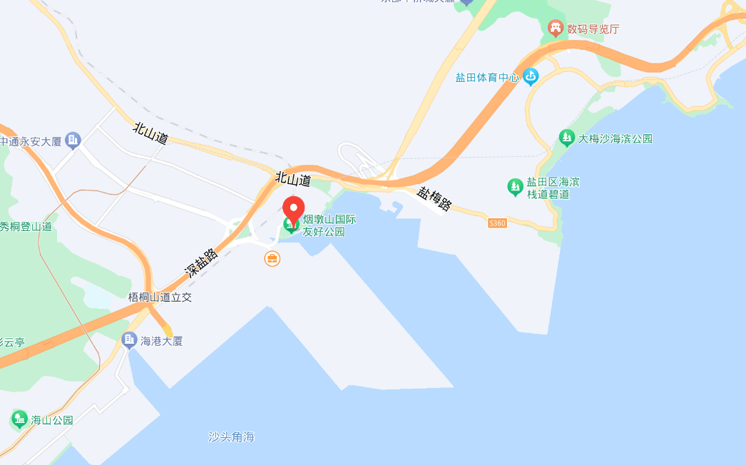 烟墩山位于盐田河入海口、避风塘南侧,现状为小型自然山体,面积约56000㎡,山体植被覆盖,具有港湾,有多种鸟类栖息其上。公园划分为“生态友好”、“国际友好” 、“和平友好”等三个主题区域。