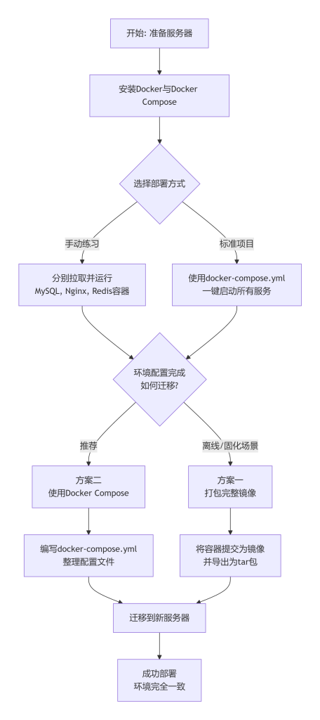 以下流程图清晰地展示了从零开始,到最终实现环境迁移的完整路径和关键决策点。