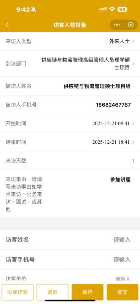 到访部门:供应链与物流管理高级管理人员理学硕士项目