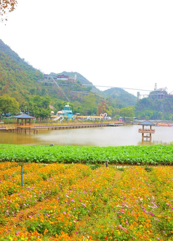 自然界中,五彩斑斓的鲜花点缀着大自然,走进宝晶宫,亲近自然之路,优美的生态环境,良好的气候及土壤条件,使得度假区内鲜花遍布,野花的千姿、千色、千香,在广东省内乃至全国都是罕见的一道风景线,具有极高的观赏及科研价值。千色群舞,涂抹鲜艳的色彩。每种颜色,每种形态,每种芳香,都拥有一个属于你的故事。成片四季花海,千日红、硫华菊遥逸风中,蜜蜂起舞,一个个忙碌而又欢快的精灵,在花丛间穿梭往来,处处充满了一种奔放、自由令人沉醉神往的勃勃生机!一阵阵的幽香环绕着你的身周,挑逗你的味蕾,直至沁人心脾!让人心旷神怡。宝晶宫的湖岸花海有专人悉心栽培管理,不同的月份有不同的感受,花期从8月初至11月初,长达三个月。