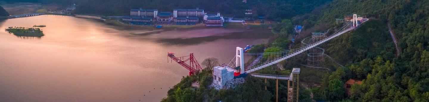 天鹅湖飞索是广东高落差穿越千亩湖泊的飞索项目,落差60米,全长520米,宽4米,运行速度5米/秒,每次限玩2人。