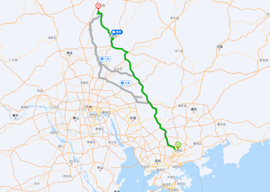 京珠高速–广澳高速–广州环城高速–大广高速–乐广高速(英德出口)