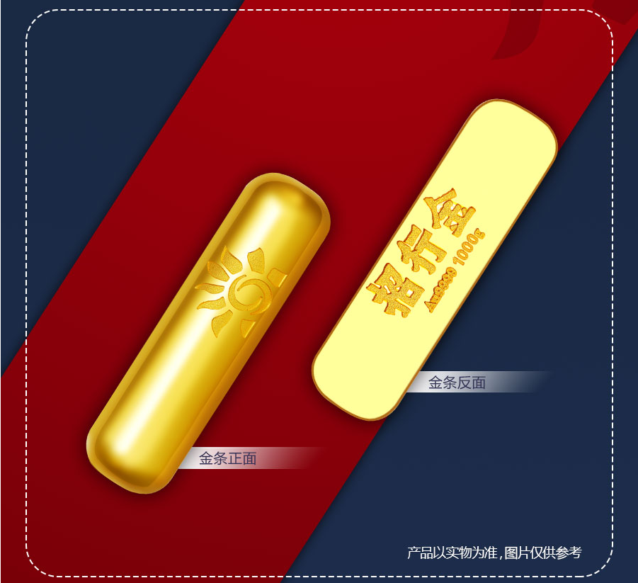 各大银行和珠宝商都发行有投资金条,下图为招行金投资金条1000克,材质为AU9999,尺寸为:51.1mm X 110mm X9.2mm
