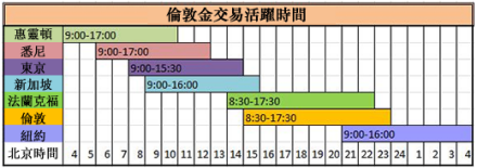 5、黄金可24小时交易,黄金不是专属于某个国家的交易品种,而是全球通行的交易产品。因此当一个国家的黄金市场休市时,地球对面另一个国家的黄金市场正在开市,由于全球各地的交易时间连成一线(如图1所示)24小时内黄金都有活跃的报价,因此可以随时进行交易。