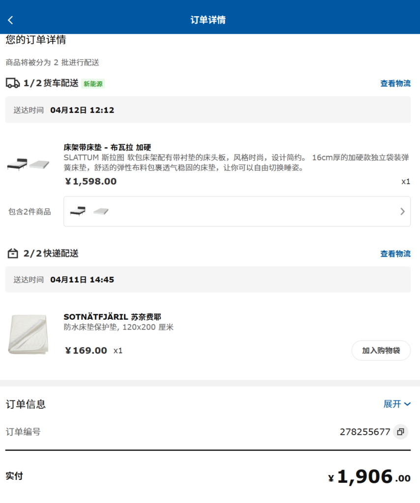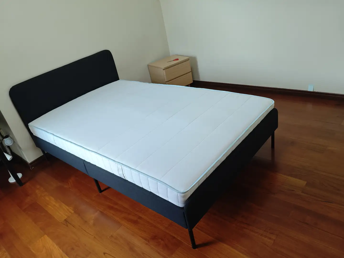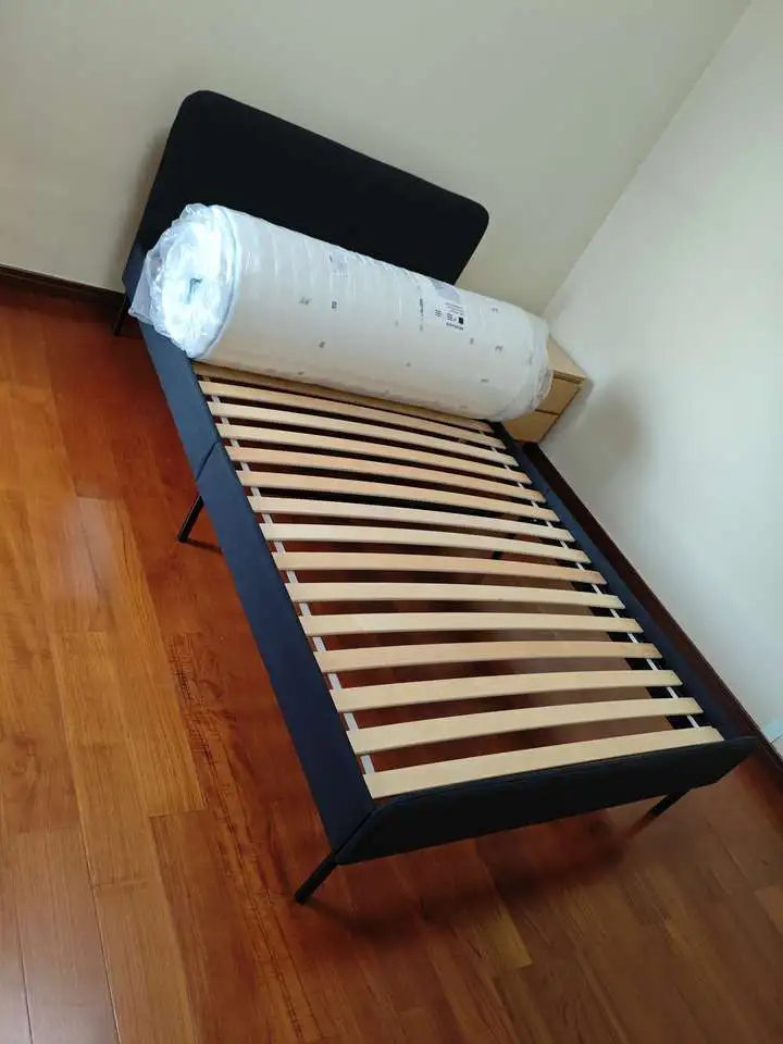 床架搭配了一个床垫,我选择的是偏硬的床垫,可以去宜家展厅看然后再网上下单。
