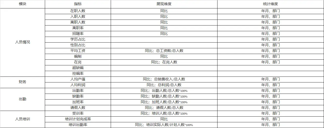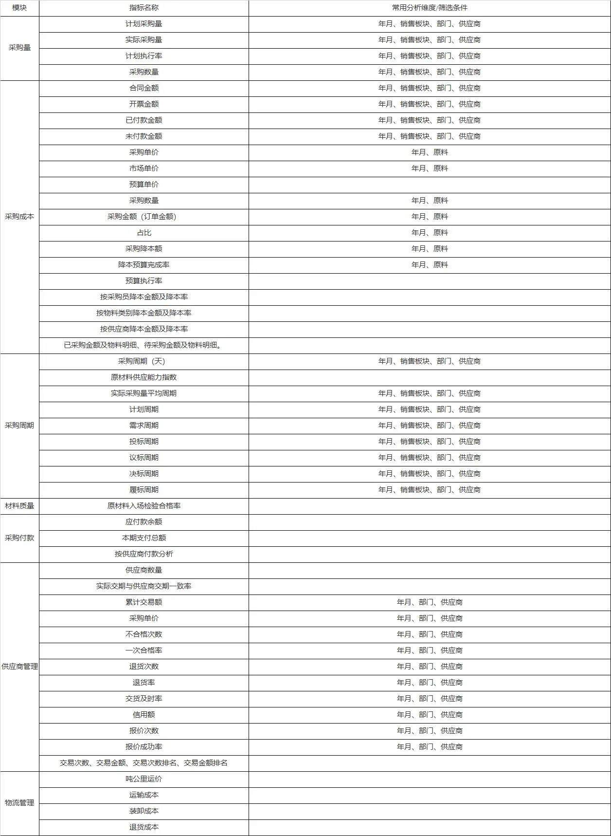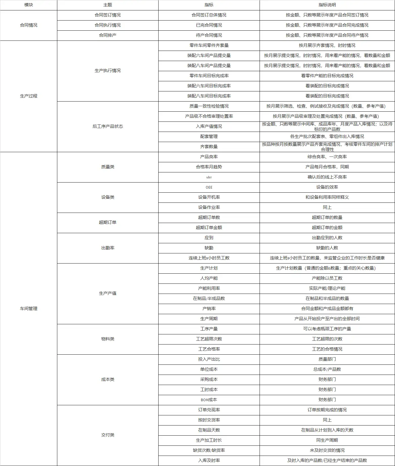 下图是举例了指标体系梳理后得到的成果,因篇幅原因,这里做了简化,实际还会考虑分析展示维度,指标的数据口径,指标的数据来源,不同企业情况不同