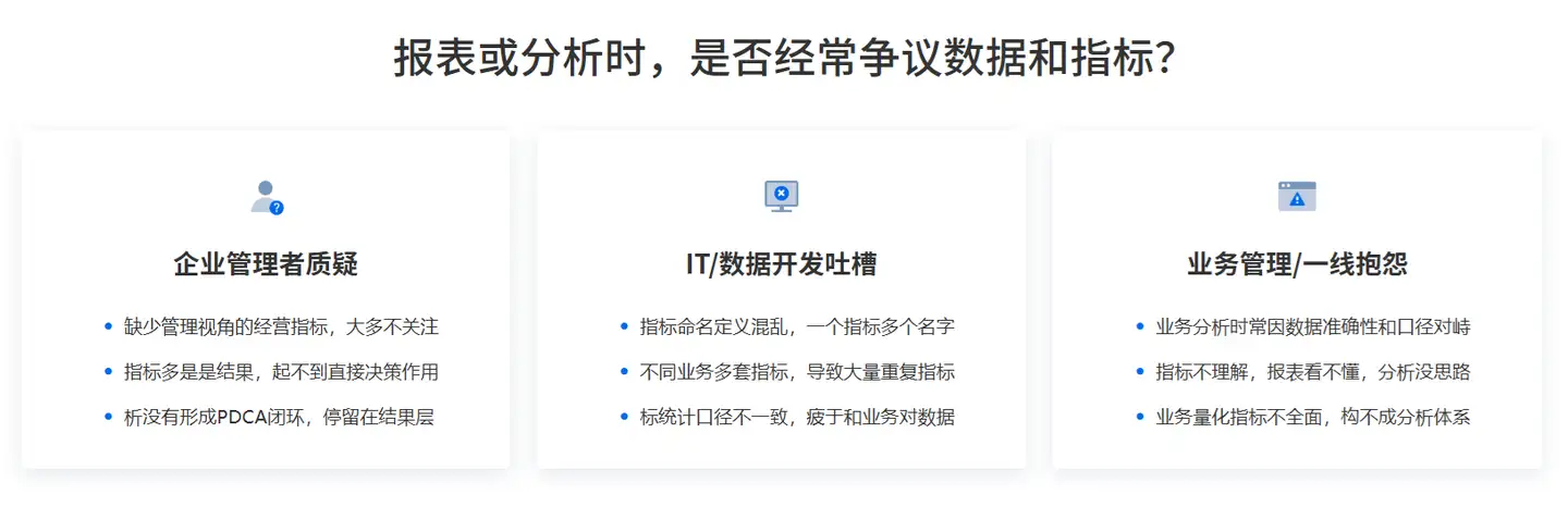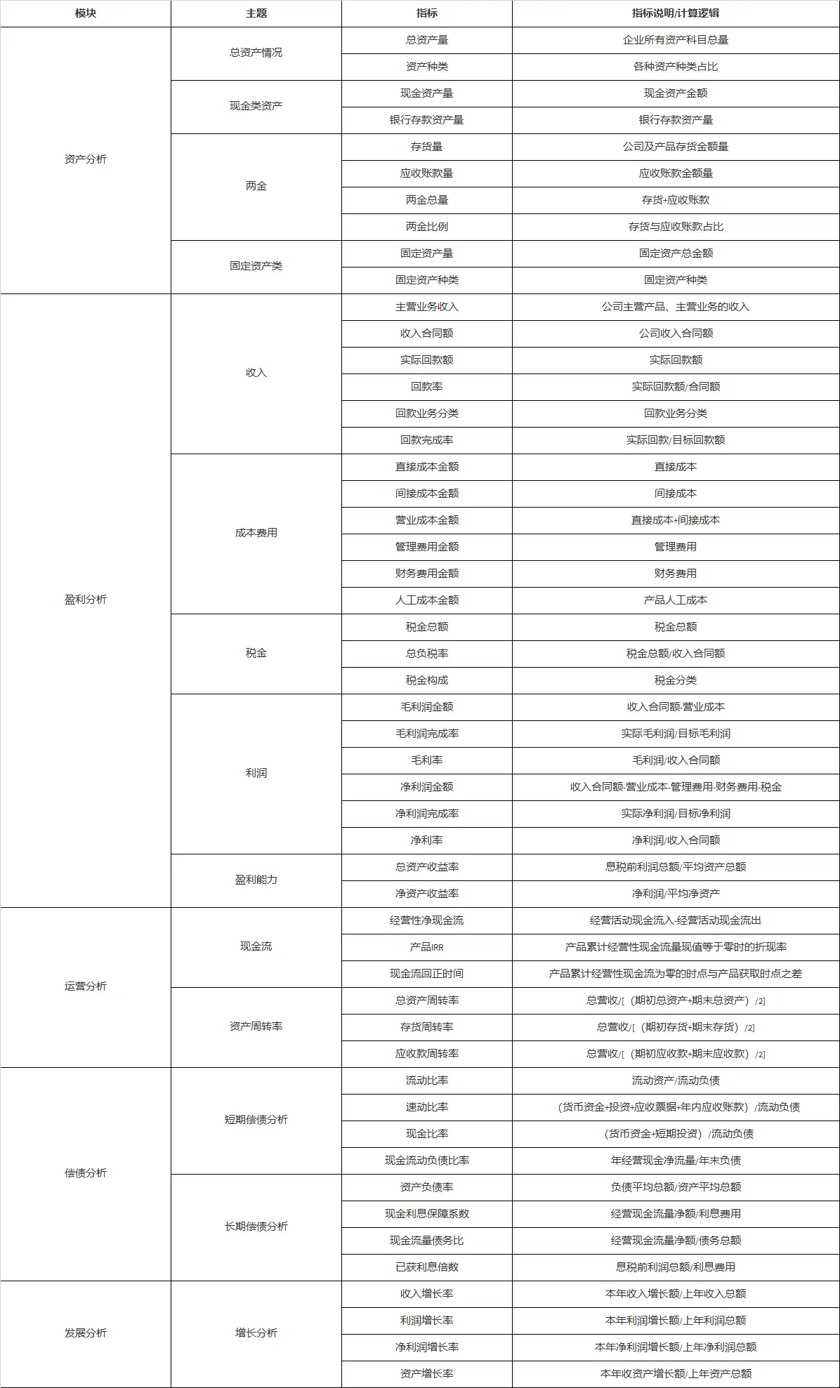 从经营和业务分析出发,构建统一标准、规范流程的指标体系,为报表展示、