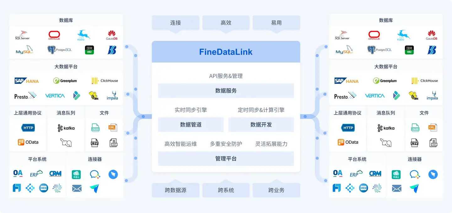 从任意终端到任意终端的数据转换、传输,解决多源异构的数据集成问题